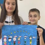 -Ученици седмог разреда у Станичењу су са наставницом Драганом Васић направили цртеж на коме су на неколико језика исписали поздрав.