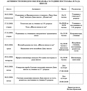 26.11.2018.године од 1100до 1200 одржана је радионица „Плави зец“ поводом Дана школе у сарадњи са Предшколском установом „Чика Јова Змај“. Учесници радионице су били васпитачице и деца предшколског узраста и ученици трећег разреда наше школе.Циљ радионице је био: да се деца предшколских група најпре упознају са школом и просторијама у школи; да сазнају како је школа добила име и зашто је 29. новембар изабран за Дан школе; да се деца и ученици упознају са песмама Душана Радовића; прошире знање из енглеском језика; развијају тимски рад, сарадњу, дружење ;развијају креативност.Најпре је ученица трећег разреда пожелела добродошлицу гостима, упознала их са школом и са рођенданом наше школе. Затим су ученици извели сценски наступ песме„ Плави зец“ а потом и пригодан програм извели на енглеском језику. Уследио је групни рад ученика и деце из предшколских установа: лепили су ,сецкали , бојили плавог зеца на честитци. Деца су уживала у раду и дружењу.Реализатори радионице су биле :Марија Митић, Светлана Ћирковић и Оливера Јовановић.